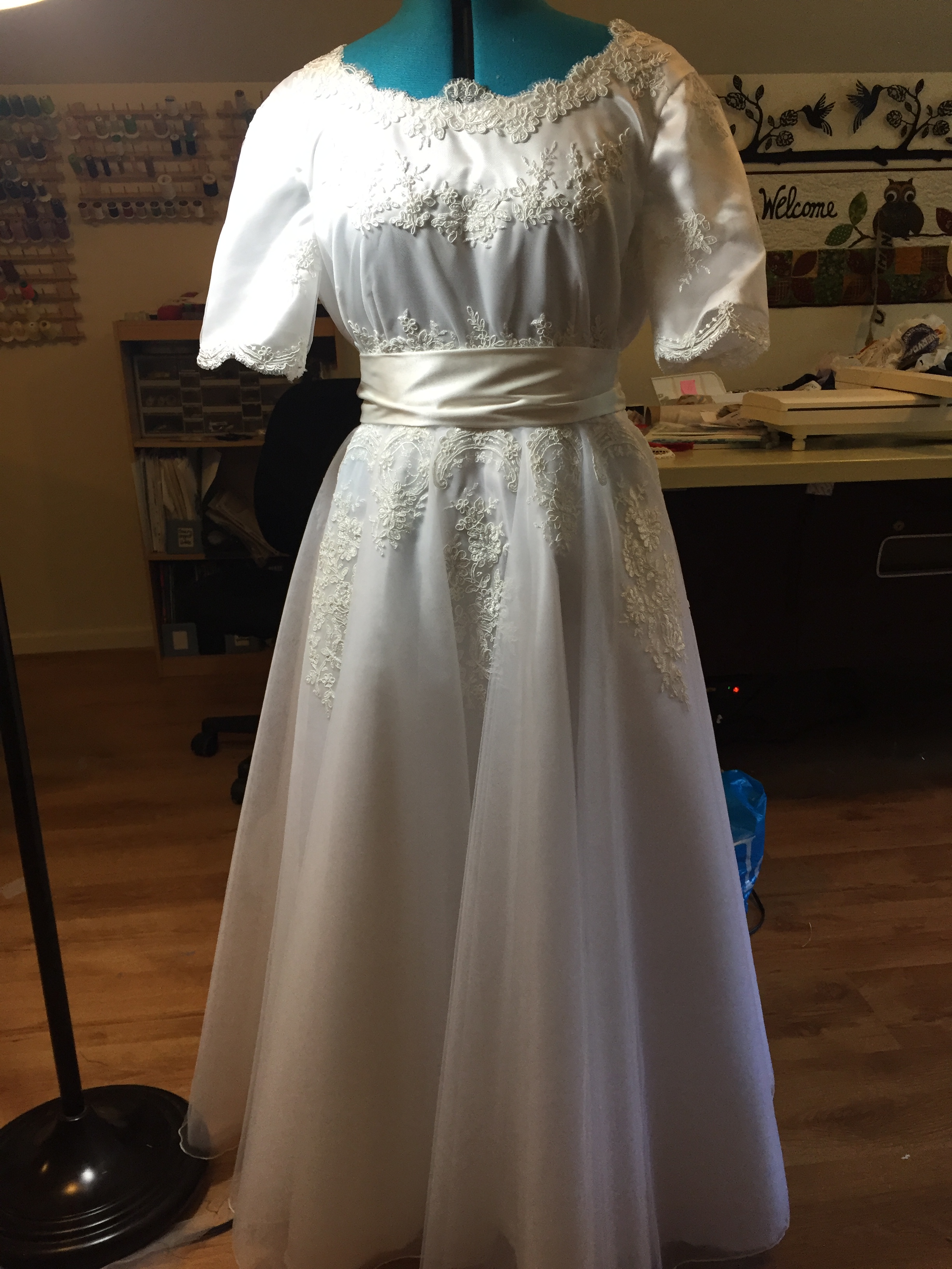 IMG_5530 May23 Published at 2448 × 3264 in Quilt Pictures ONLY ← Previous Next → The wedding dress – looks much better on my daughter. Lots of handwork sewing on the lace. Share this:TweetLike Loading...